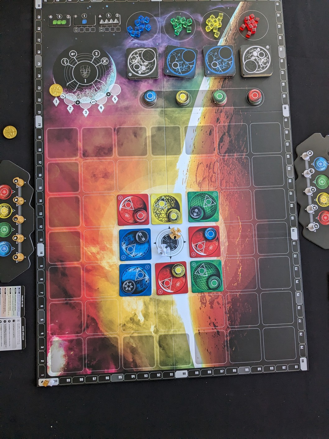 Dès la première phase du premier tour, des choix se poserons et commencerons à triturer votre cerveau. Quelle planète prendre ? Quel côté choisir ? Où poser sa planète ? Quel Satellite prendre ? On sent tout de suite qu’on va faire fumer la caboche et c’est fort plaisant.