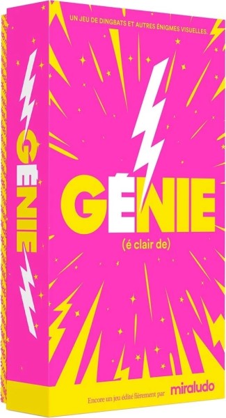 Eclair de Génie Un jeu qui mèle humour et énigme avec assez de cartes pour plusieurs sessions de jeu ! Près de 300 énigmes visuelles et dingbats astucieux pour mettre votre esprit à l’épreuve. Drôle, malin et addictif, préparez-vous à avoir de nombreux éclairs de génie ! 🎂 8 ans | 🤦 2 à 8 joueur(s) | ⏳ 15mn à 30mn | 🏠 Miraludo