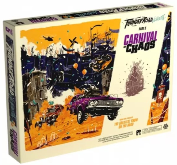 Extension [Thunder Road] : Le Cirque du Chaos Les joueurs font la course avec leurs voitures dans l’arène, collectant au passage des accessoires de fête délirants, de puissantes super-armes et de précieuses pièces de ferraille. Cette extension comprend également un ensemble complet de véhicules et un tableau de bord, ce qui vous permet de jouer avec un cinquième joueur en utilisant cette extension ou dans le jeu normal. Contrairement à une partie normale de Thunder Road: Vendetta, le gagnant du Carnaval du Chaos est le joueur survivant qui possède le plus de ferraille à la fin de la partie. Il n’y a pas de ligne d’arrivée. 🎂 10 ans | 🤦 2 à 5 joueur(s) | ⏳ 30mn à 60mn | 🏠 Lucky Duck Games