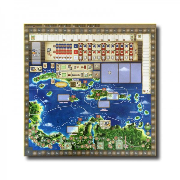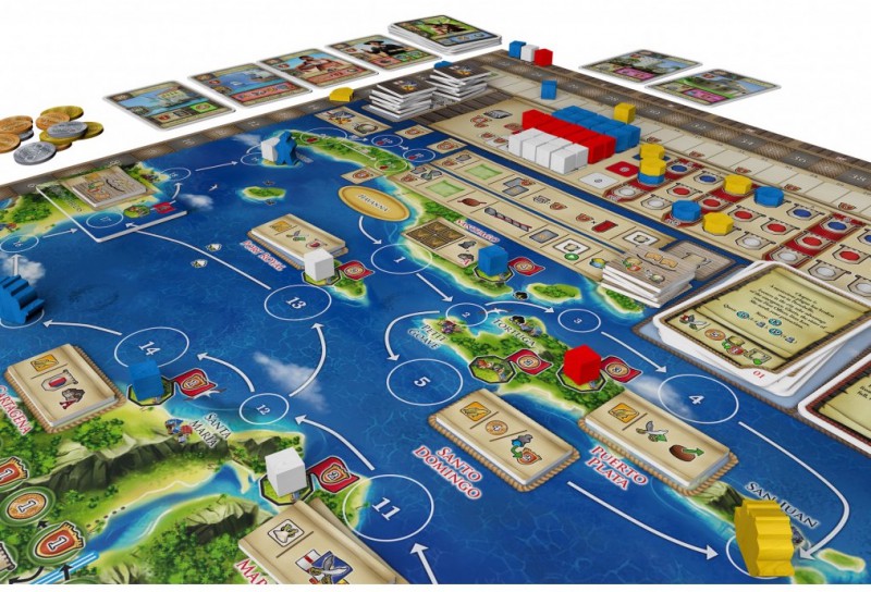 Super Meeple avec Maracaibo nous offre tout un programme, ça donne envie les caraïbes, le voyage en bateau, on se sent l’âme d’un aventurier du voyage. Mais en réalité il en est tout autrement, nous avons bien là un très bon jeu à l’Allemande de haute voltige de la part du célèbre auteur Alexander Pfister.
