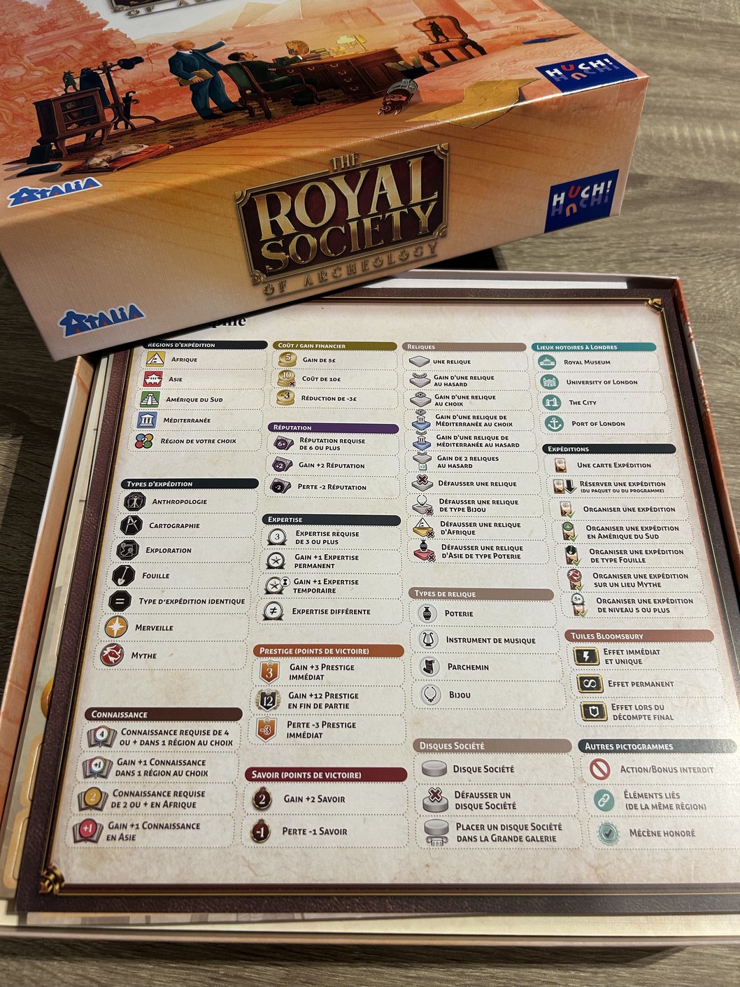Enfin, le jeu propose une double piste de score : le Prestige (réputation) et le Savoir. En fin de partie, seul le score le plus faible des deux est pris en compte. J’adore ce système, car il oblige à faire progresser les deux pistes de manière relativement équilibrée, à la manière d’un La Couronne d’Emara. Cela apporte une tension supplémentaire dans un jeu qui n’en manquait déjà pas.