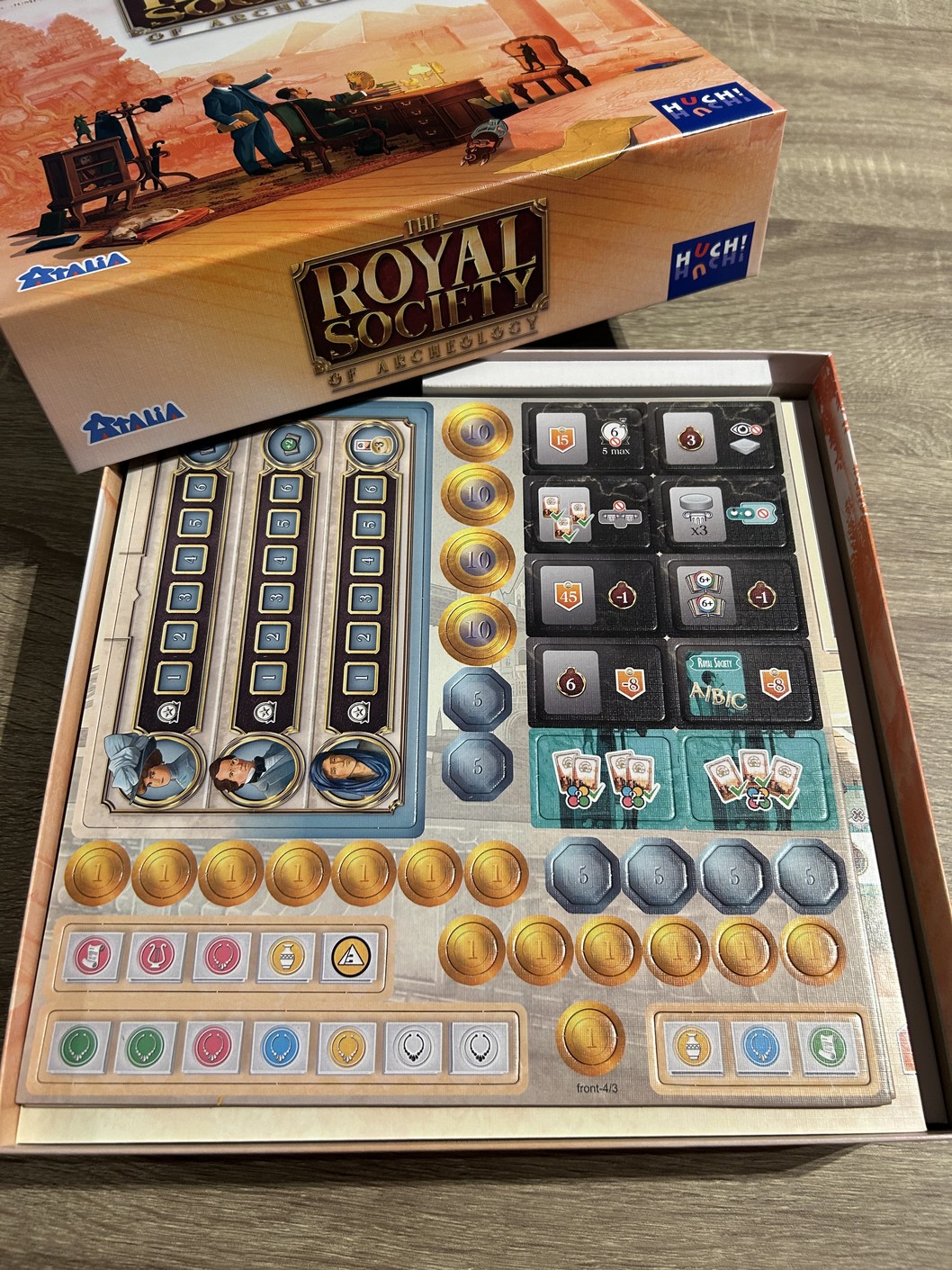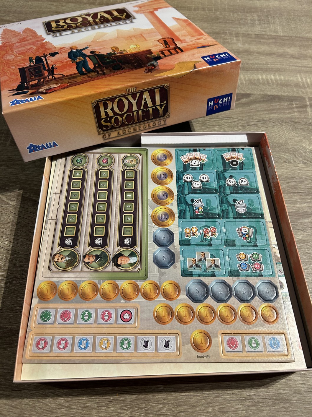 Si je devais formuler quelques petites critiques, je dirais que le plateau principal me paraît un peu fin — même si cela ne gêne absolument pas en cours de partie — et que les jetons argent, censés représenter la livre anglaise, ne sont pas très esthétiques (avis totalement personnel). Du coup, je pense « pimper » un peu le jeu avec deux ajouts : un insert pour améliorer le rangement et faciliter la mise en place, ainsi que des pièces en métal pour un meilleur ressenti en jeu. Je précise tout de même que je ne fais ce genre d’améliorations que pour les jeux que j’apprécie vraiment et que je sais que je vais ressortir régulièrement.